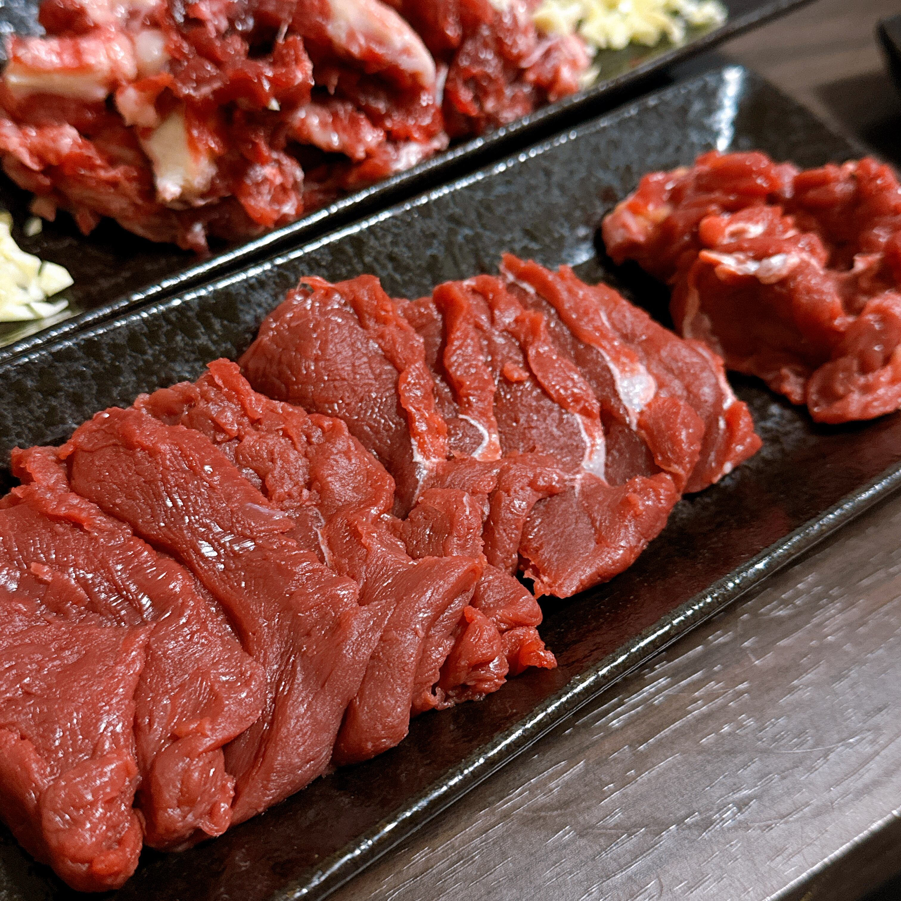 部位は もも肉 or 肩。赤身らしいさっぱりとした旨味が特徴で、臭みも少なく扱いやすい馬肉です。
