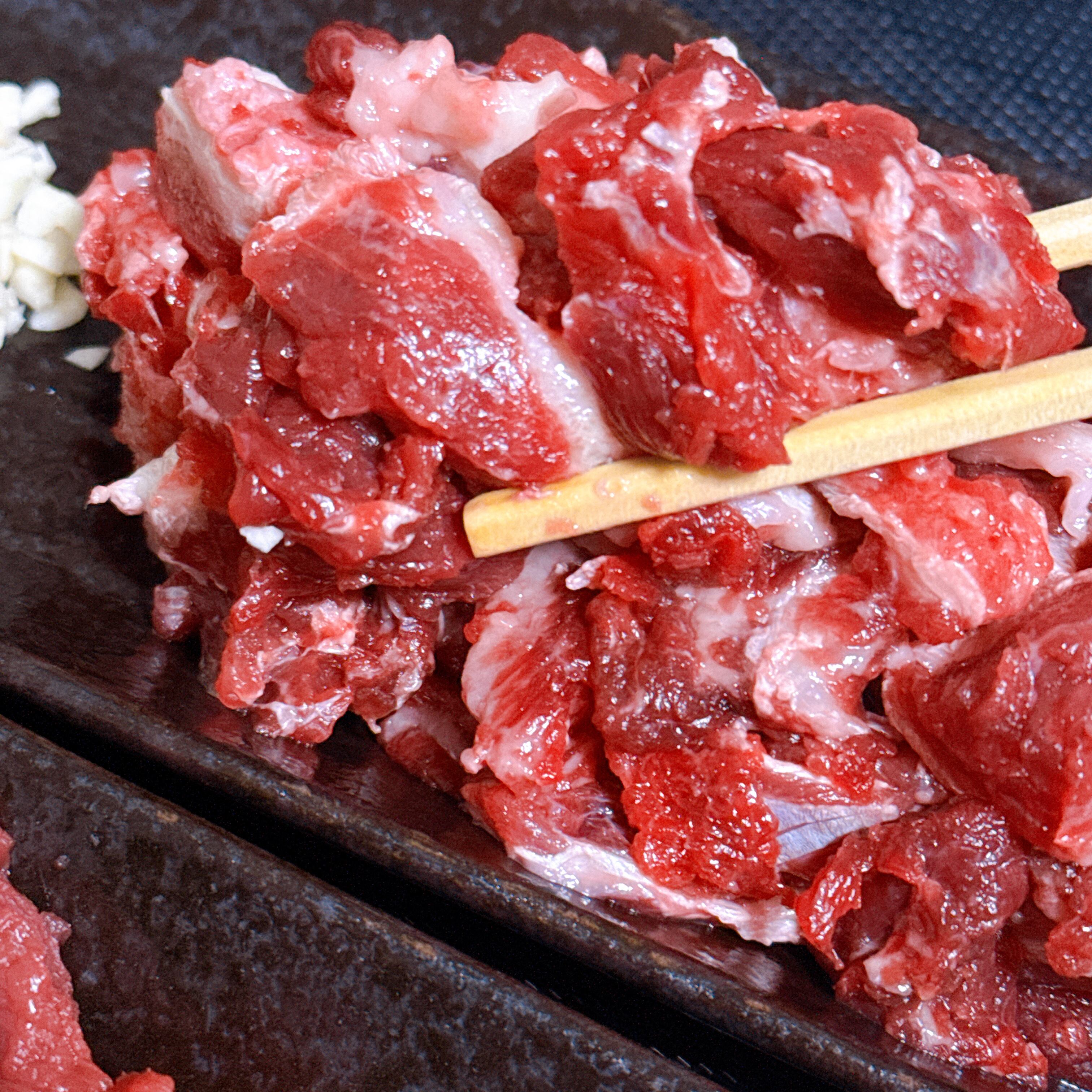 本商品は、屠畜時に骨周りに残った旨味の強い肉を