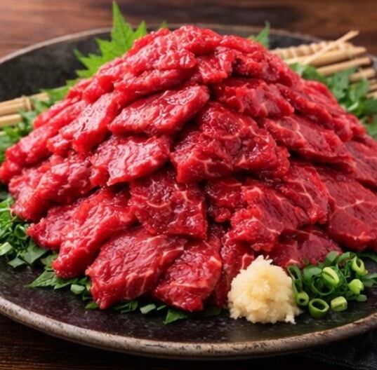部位は もも肉 or 肩。赤身らしいさっぱりとした旨味が特徴で、臭みも少なく扱いやすい馬肉です。