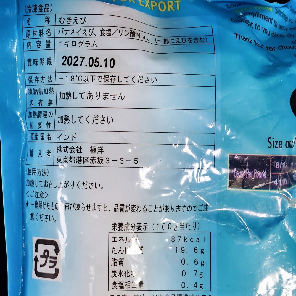 ・インド産 養殖バナメイ海老