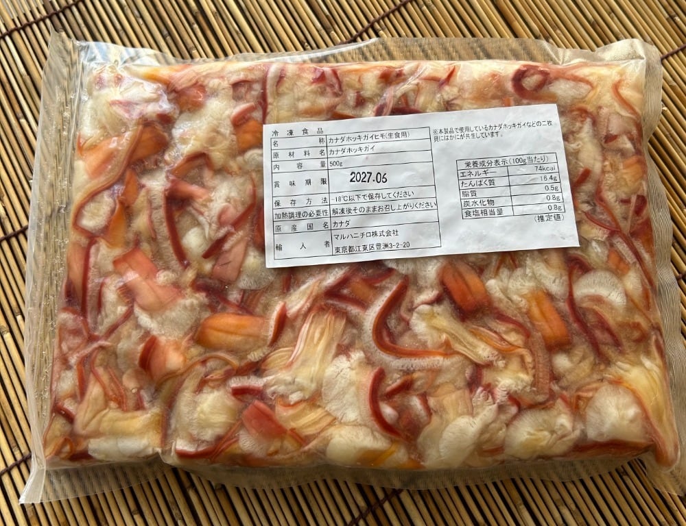 カナダ産ホッキガイのひも部分を使用した、生食用ホッキ貝ひもです。